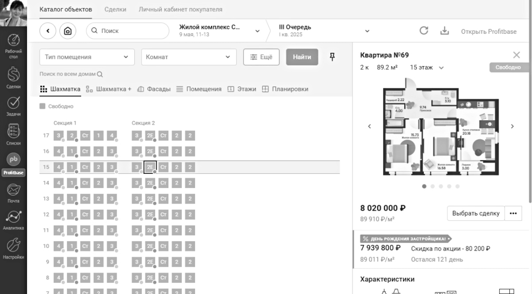 В ходе разработки дизайна мы поняли, что пользователи могут прийти к просмотру карточек планировок несколькими путями: через общий поиск, через планировки конкретного ЖК и фасады, или через «шахматку». Популярные пути и понятный интерфейс мы оставили, а от всего сложного избавились