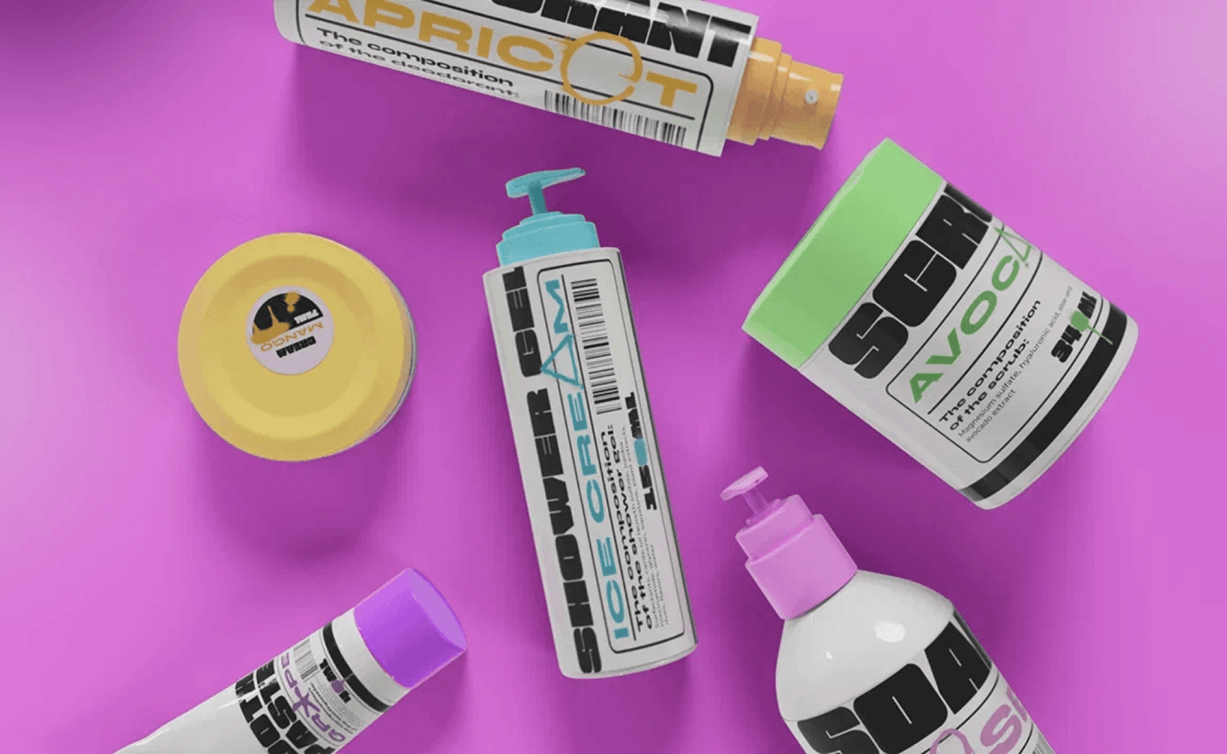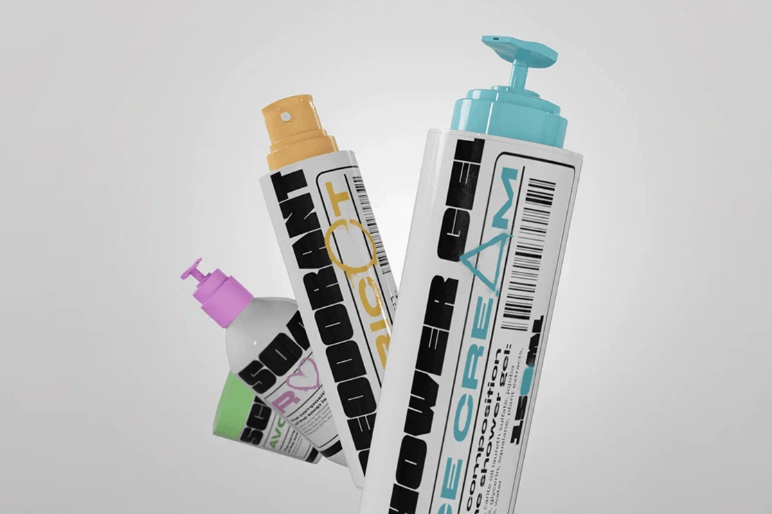 Разработать дизайн этикеток для косметической продукции, который выделит бренд среди конкурентов и привлечет молодую, прогрессивную аудиторию. Требовалось создать образ, сочетающий честность состава (минимализм в подаче информации) и современную эстетику (уличная культура)