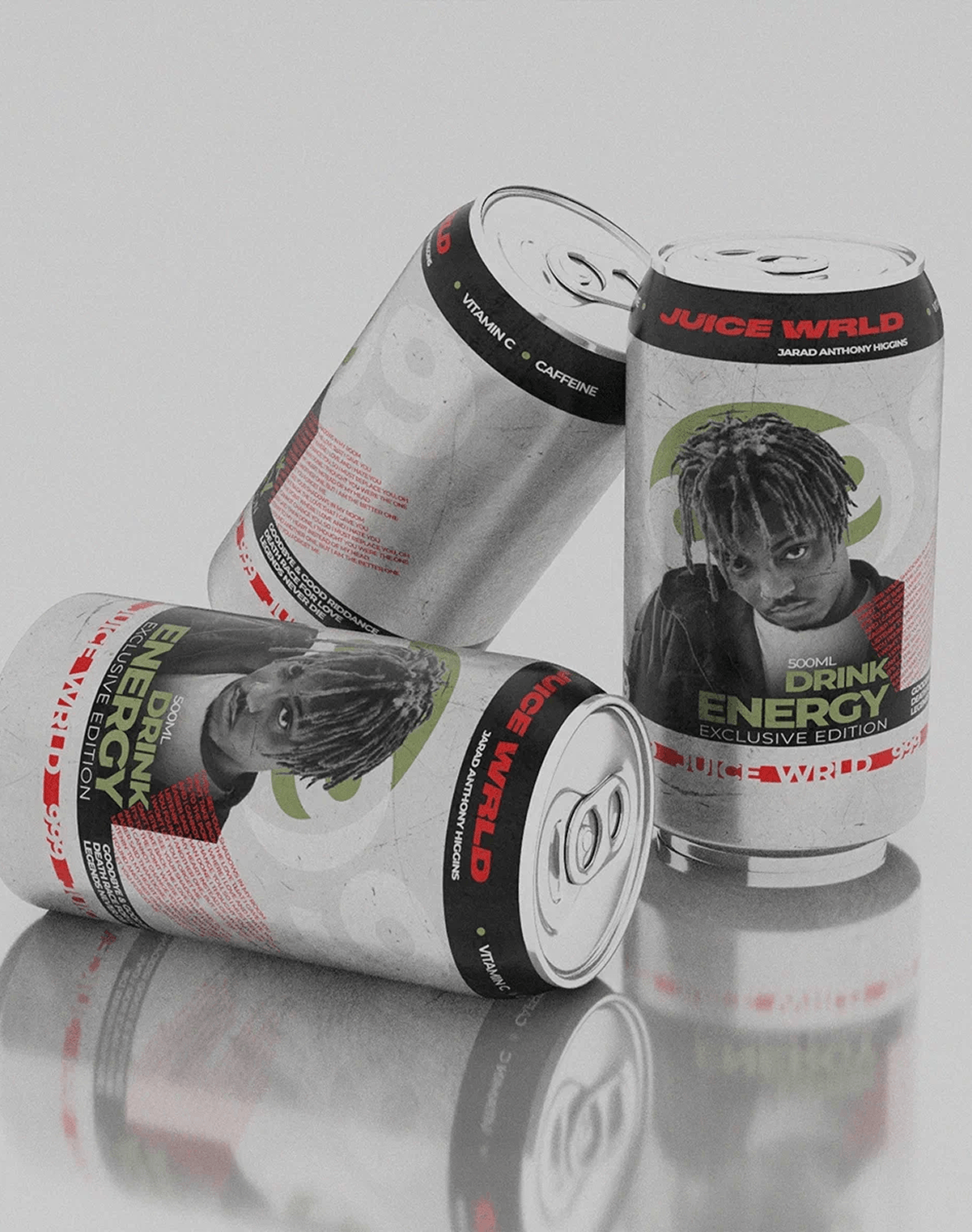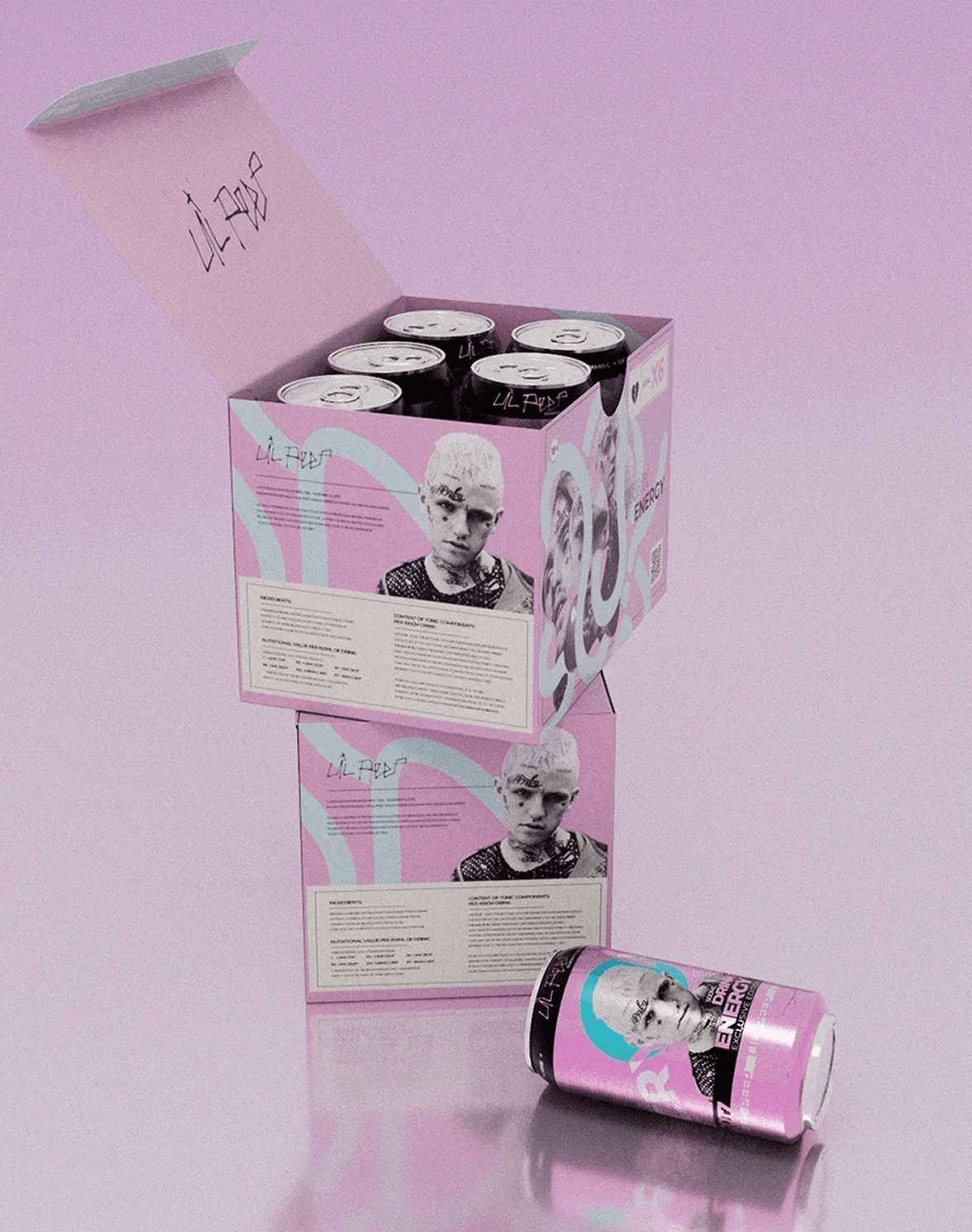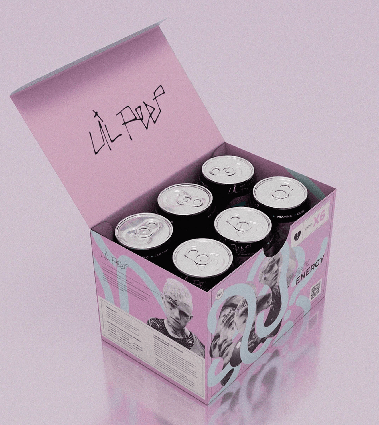 Разрабатывая дизайн, я стремился уйти от мрачного траура к взрывной энергии творчества. Каждая банка — это портал в мир исполнителя: