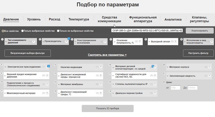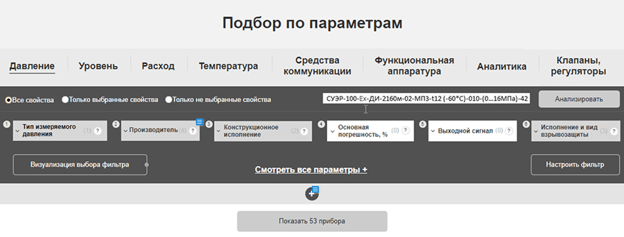 Разработать каталог для подбора и составления строк заказа измерительного оборудования.